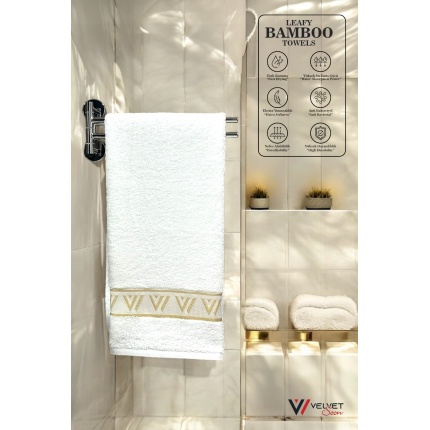 %100 Organik Bambu Havlu – Yumuşak, Antibakteriyel, Hızlı Kuruyan ve Çevre Dostu El & Yüz Havlusu Beyaz-V Desen