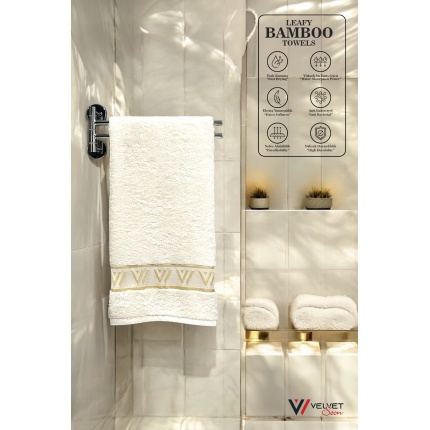 %100 Organik Bambu Havlu – Yumuşak, Antibakteriyel, Hızlı Kuruyan ve Çevre Dostu El & Yüz Havlusu Ekru-V Desen