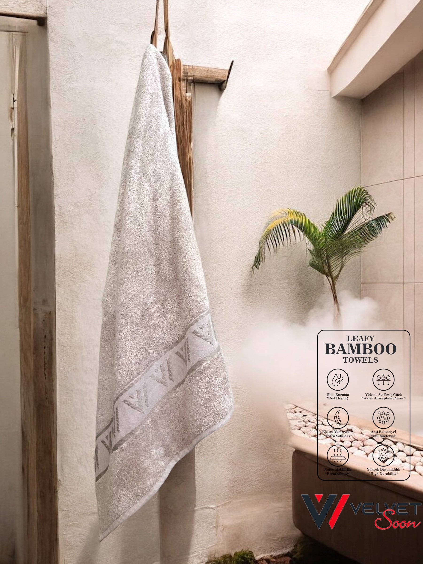 Bambu liflerinden üretilen bu özel banyo havlusu olarak kullanılabilir.