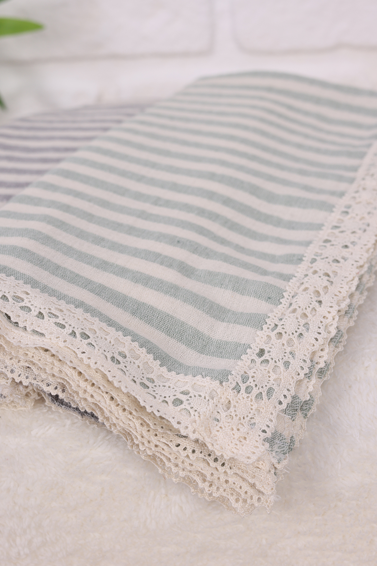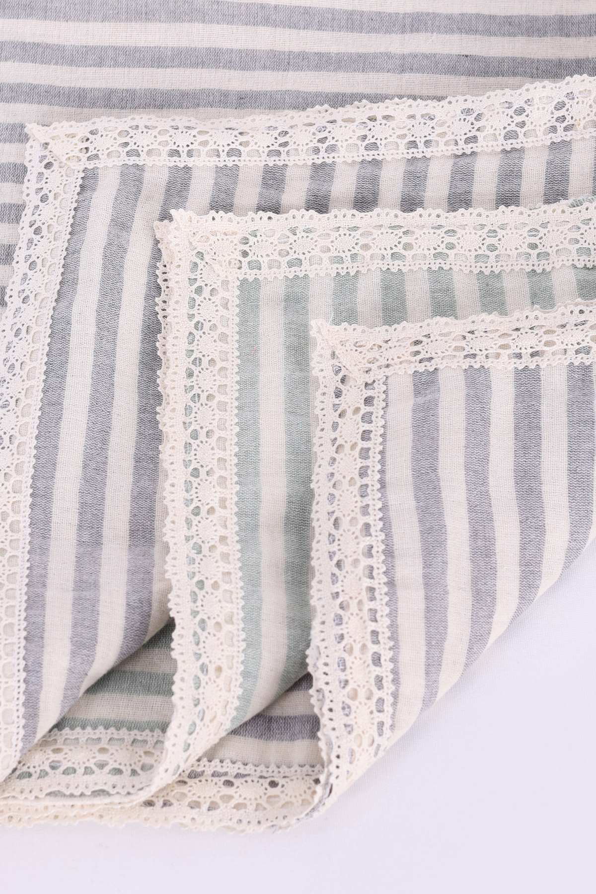 Ürün Kumaşı: Müslin %100 pamuk Paket içeriği: 3 adet müslin bebek örtüsü · 2 adet gri ve 1 adet yeşil çizgili müslin örtü.