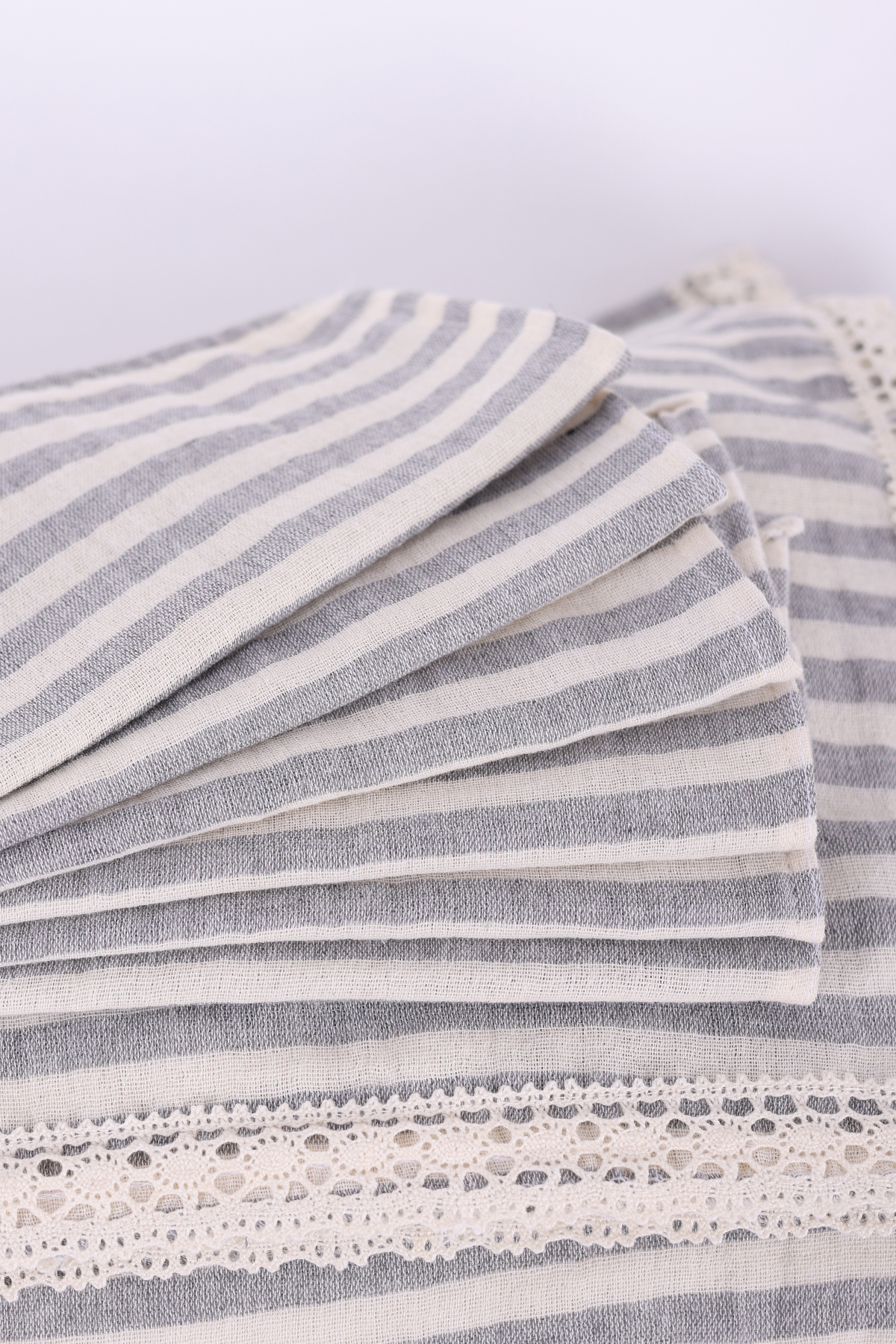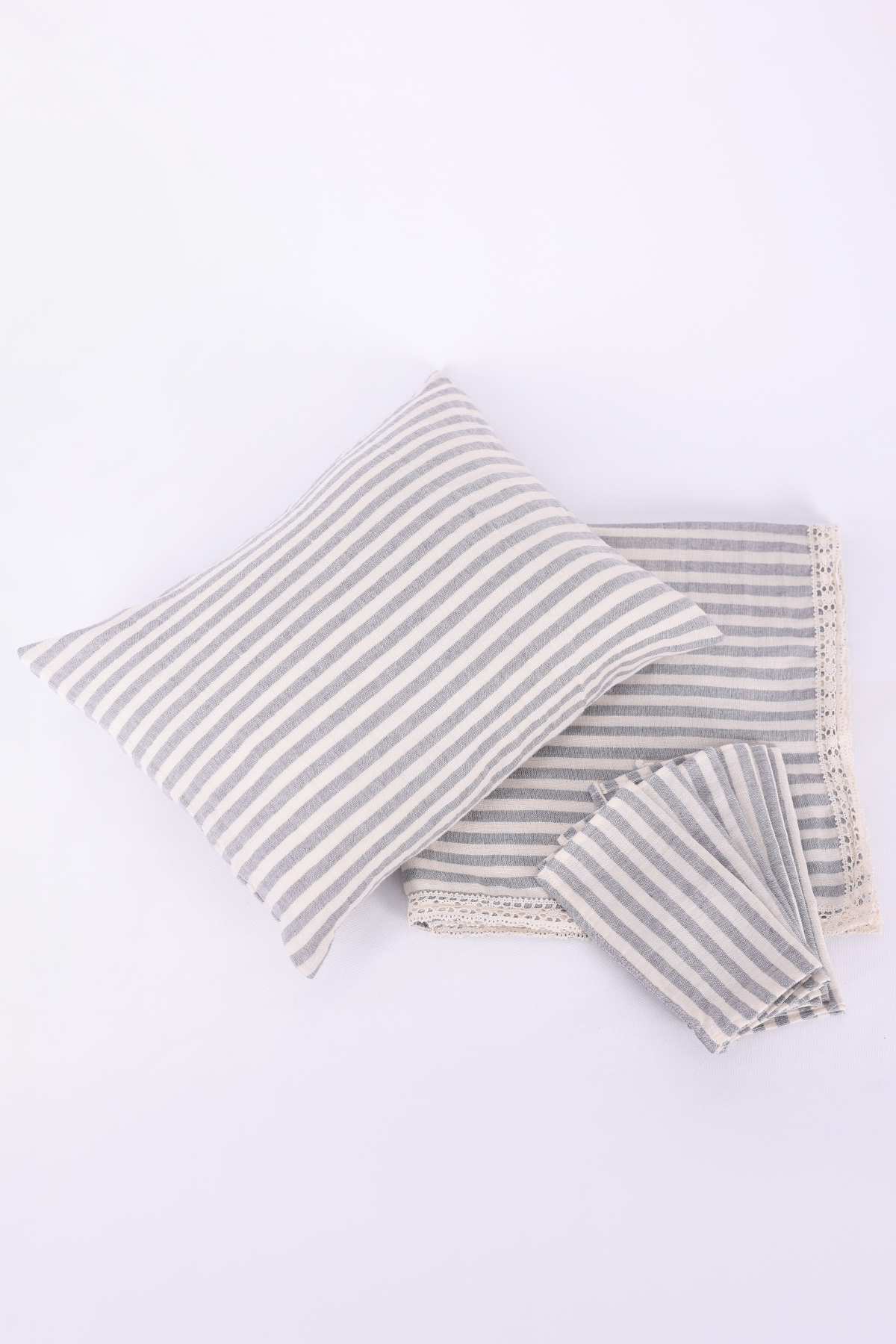 Ürün ölçüsü: 75 cm X 75 cm 1 adet müslin örtü. Müslin Yastık kılıfı ve yastık. 6 adet müslin ağız  mendili