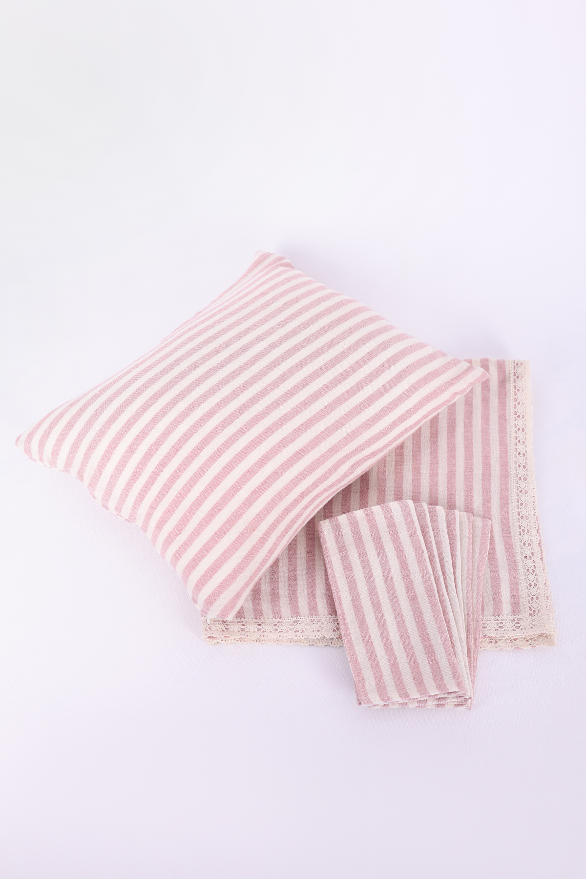 Ürün ölçüsü: 75 cm X 75 cm 1 adet müslin örtü. Müslin Yastık kılıfı ve yastık. 6 adet müslin ağız  mendili