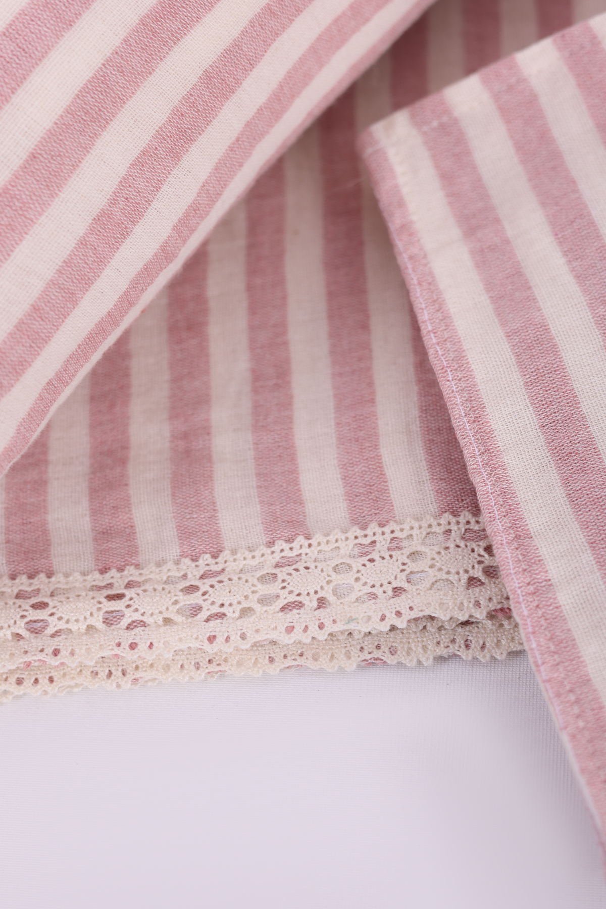 Ürün ölçüsü: 75 cm X 75 cm 1 adet müslin örtü. 35×45 cm fermuarlı Müslin Yastık kılıfı ve yastık. 6 adet müslin ağız  mendili