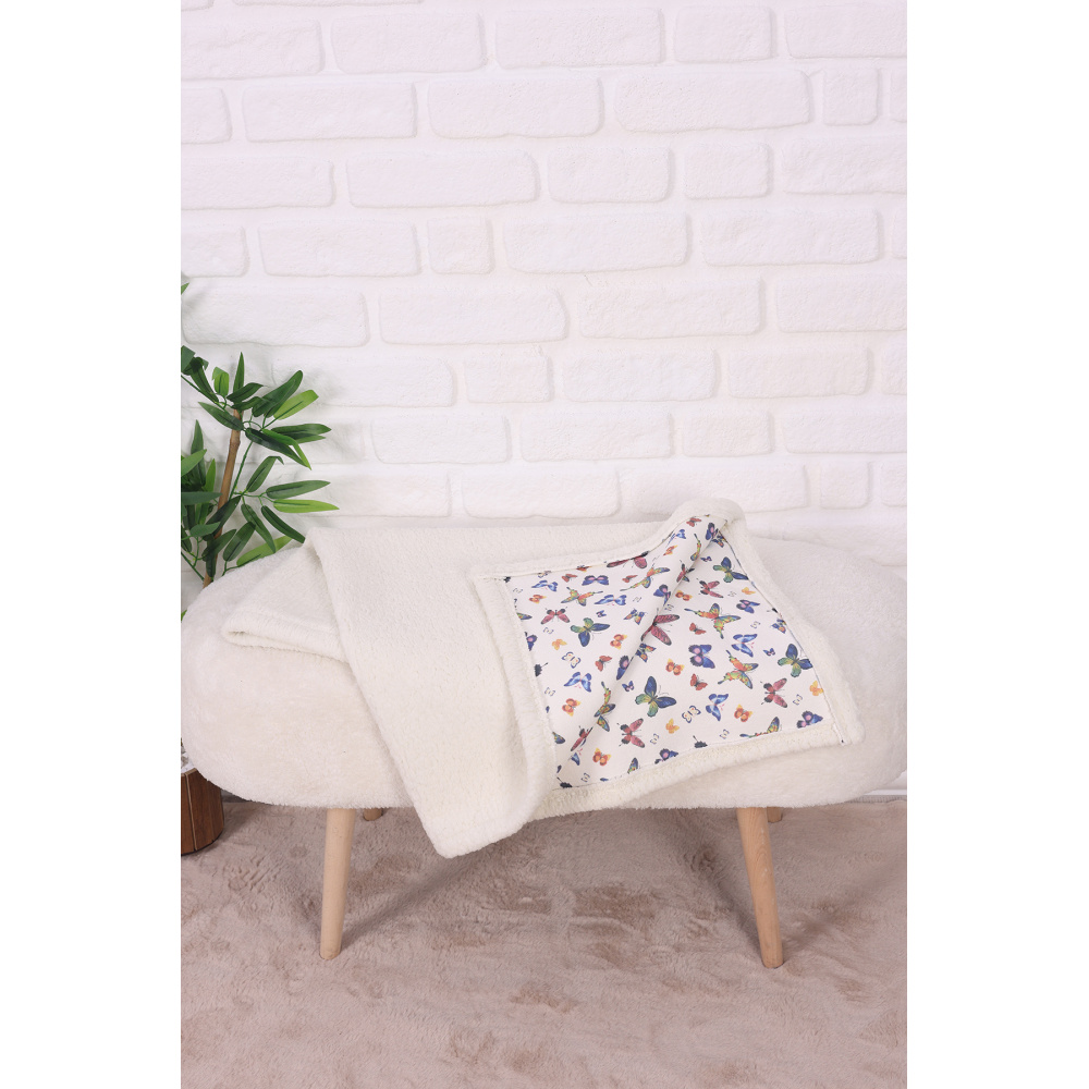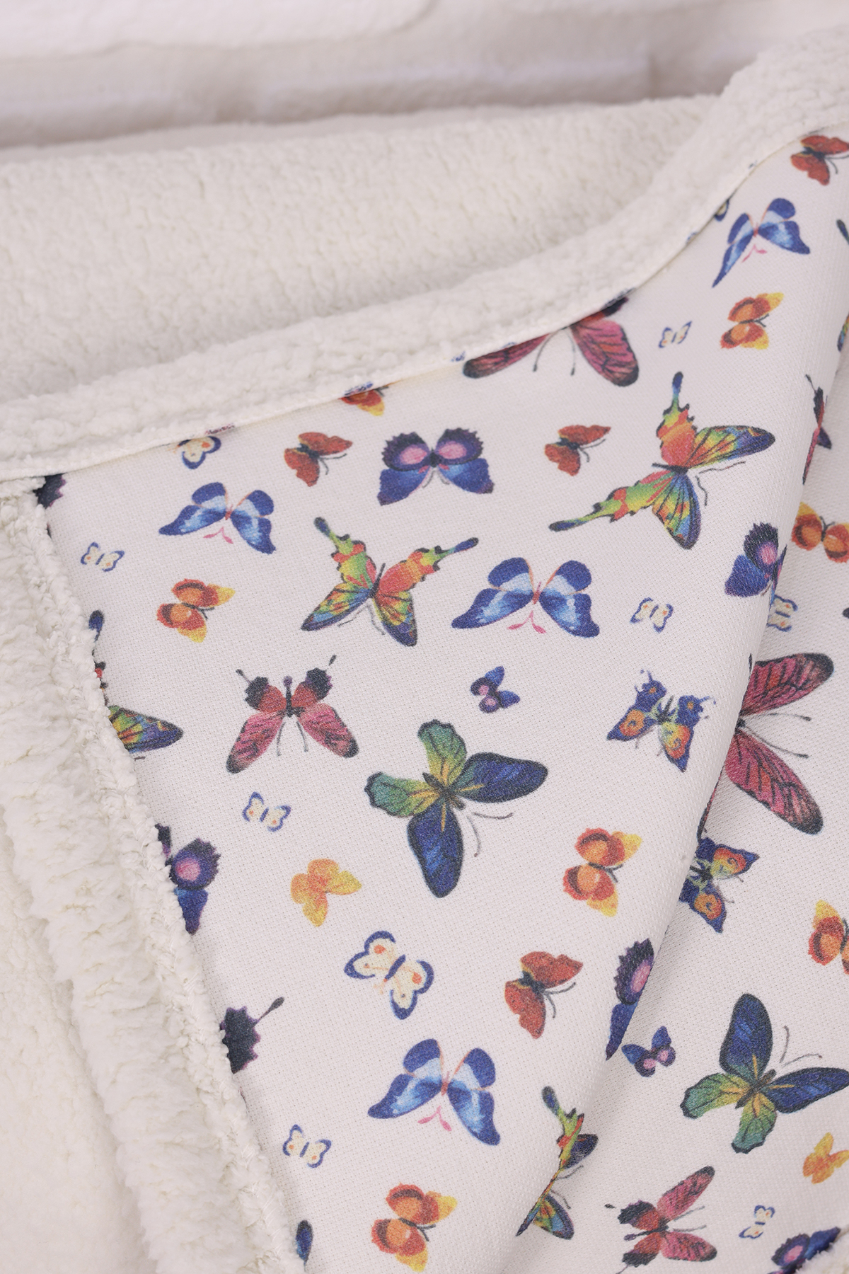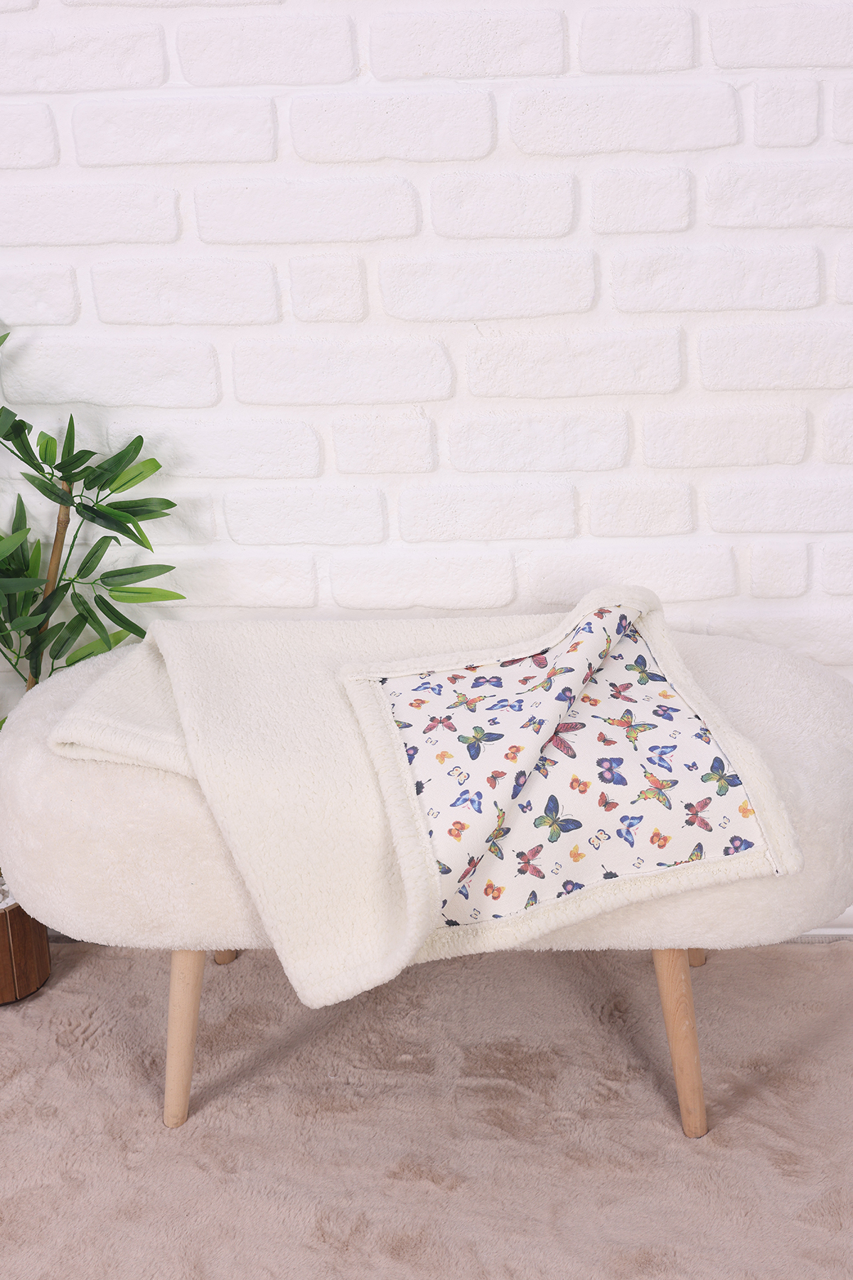 Kelebek Baskılı Bebek Battaniyesi 85×100 Cm Koyun Tüyü ve Müslin Battaniye