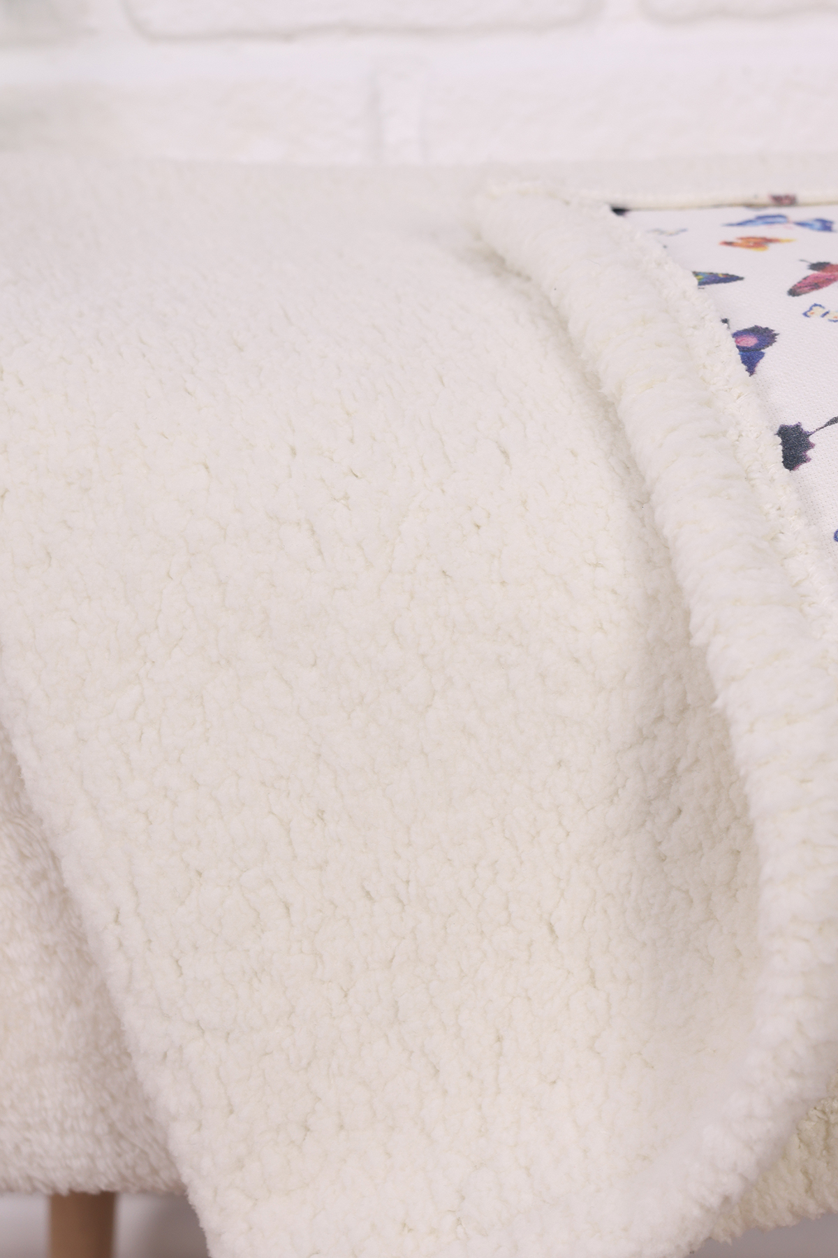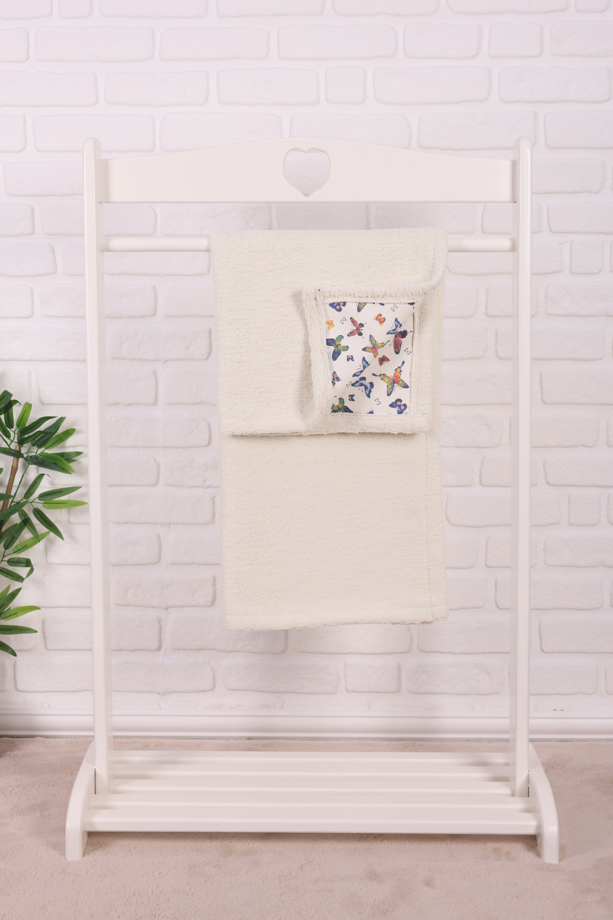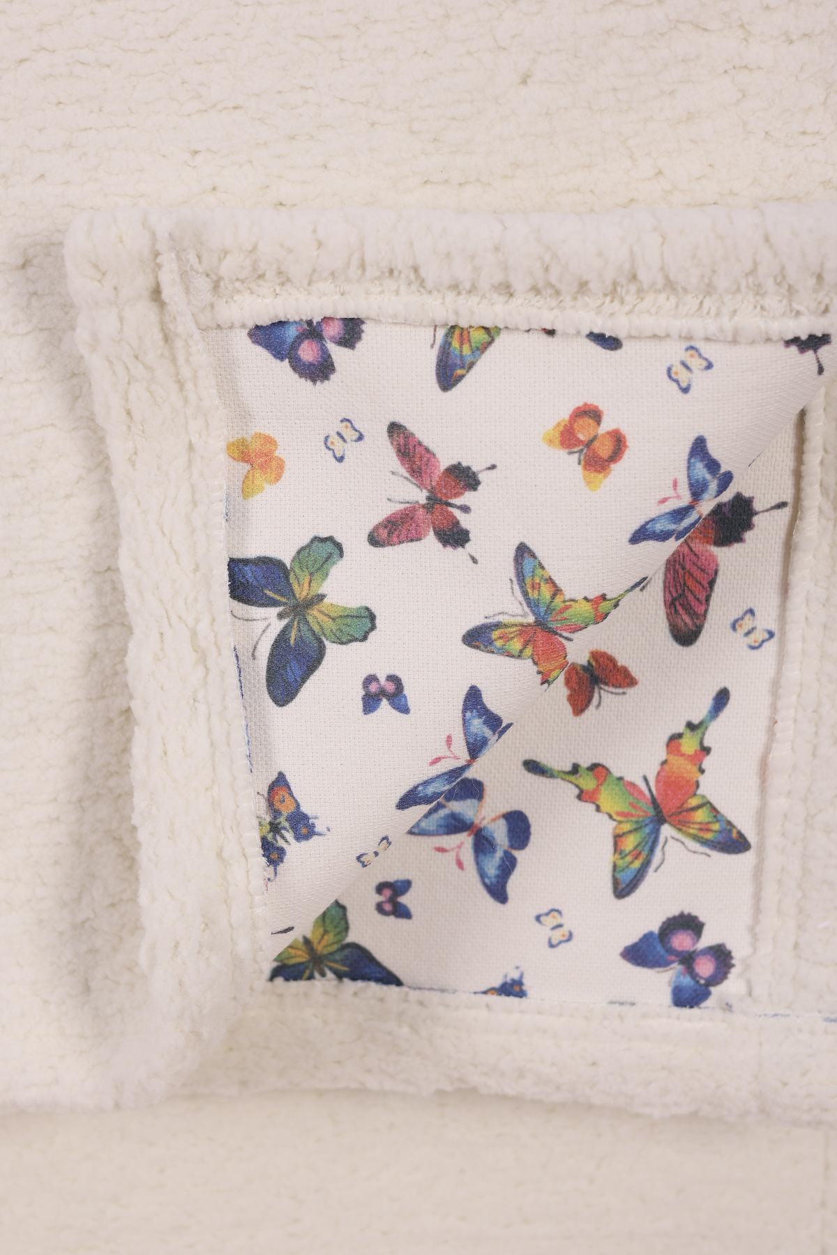 Kelebek Baskılı Bebek Battaniyesi 85×100 Cm Koyun Tüyü ve Müslin Battaniye